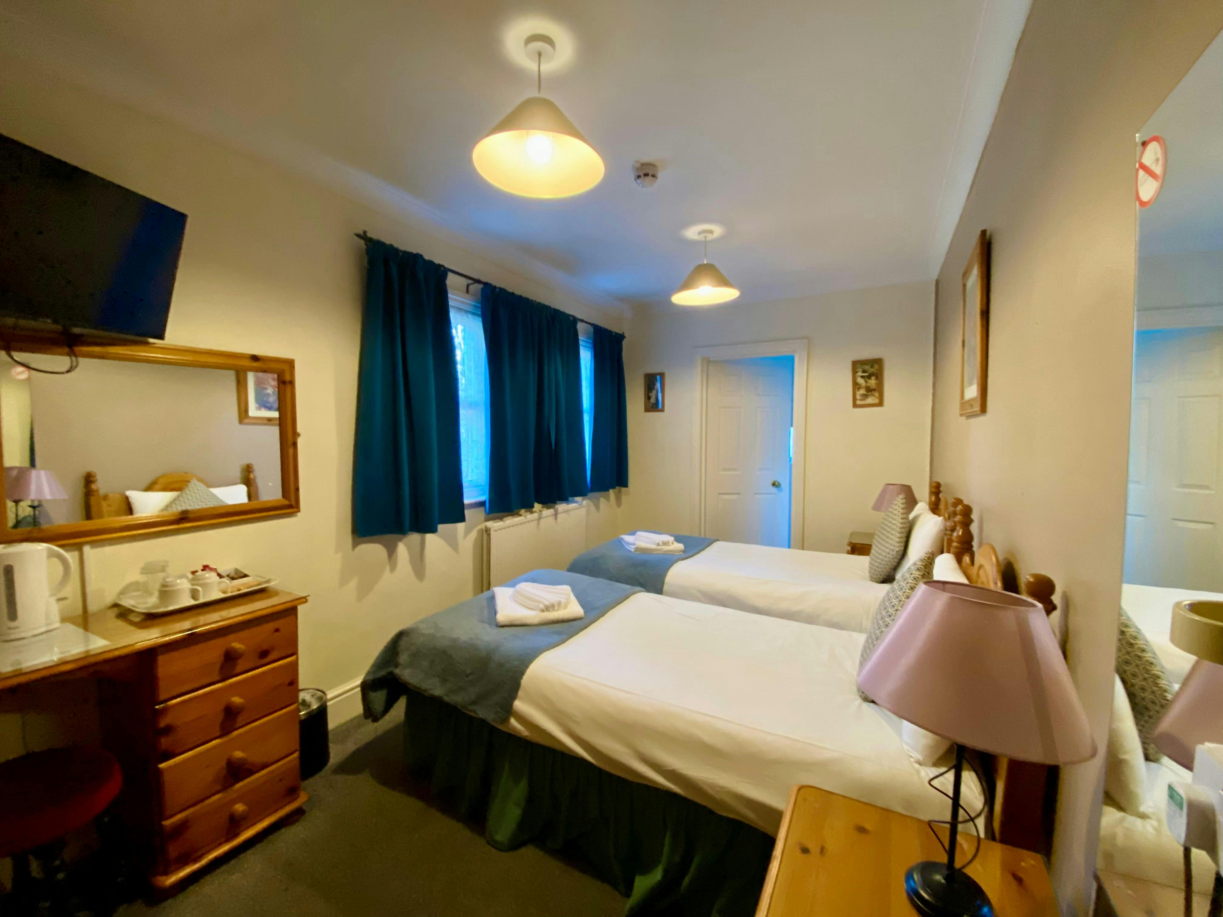 Our Standard Twin Room is ideal for friends, colleagues, or travellers sharing, offering two comfortable single beds within 161 sq ft of well-designed space. The room features a private en-suite bathroom with a bath or shower and enjoys a pleasant garden view for a relaxing stay.